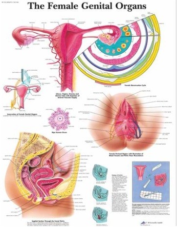 This colorful anatomical chart details the anatomy of the female genital organs. The important anatomical structures are pictured and labeled. The microanatomy of the ovaries and other areas of the female genital organs are also displayed in this poster. Some methods of contraception are detailed on the chart as well. This poster is great for any classroom or doctor's office where the anatomy of the female genital organs are of interest. This chart is printed on premium glossy (200g) paper. Convenient Poster size 50x67cm (20x26'').