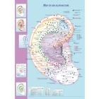 Points from the Chinese and French School of Ear acupuncture, Nogier Frequency-zones, Reflexiology zones, Anatomical ear zones 3 tables of Frequencies (Nogier, Bahr, Reininger). Size A1 (59,4 cm x 84,1cm) High quality aluminum rod (top and bottom) Heavy, high qualtiy paper 4 colour print Ple