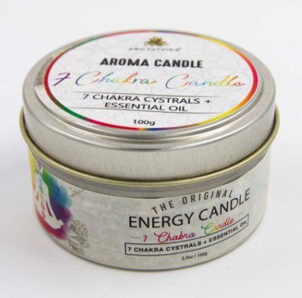 נר טבעי איכותי של חברת Arotatvika מכיל שמן אתרי ושבבים בריח שבע הצ'אקרות