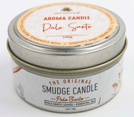נר טבעי איכותי של חברת Arotatvika מכיל שמן אתרי ושבבים בריח PALO SANTO